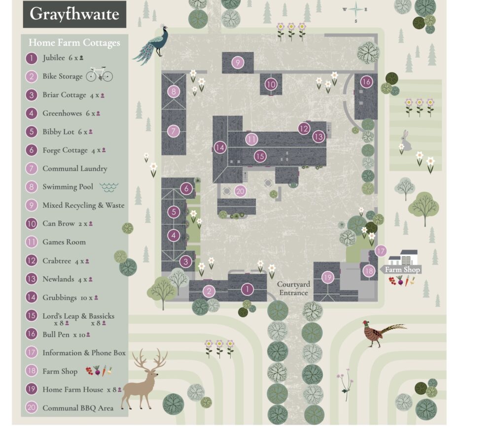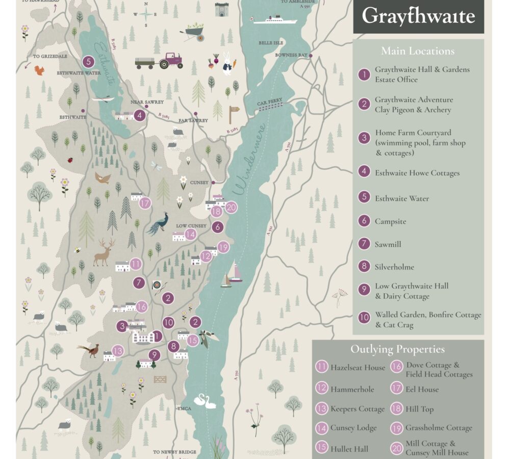 - On-site activity company Graythwaite Adventure providing watersports, 4×4 off-road driving, clay pigeon shooting, archery, axe throwing and bushcraft